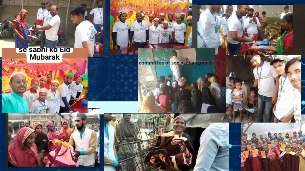 – Distributing food, clothing, and ration kits to families in need.